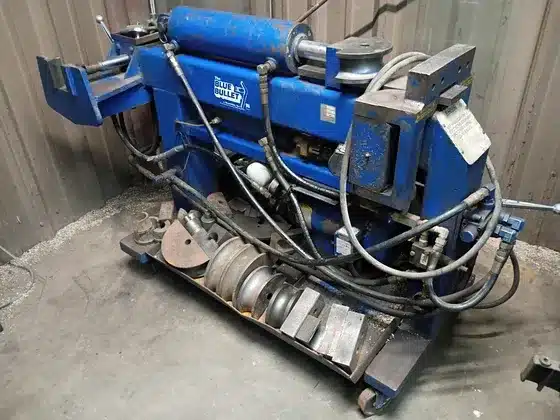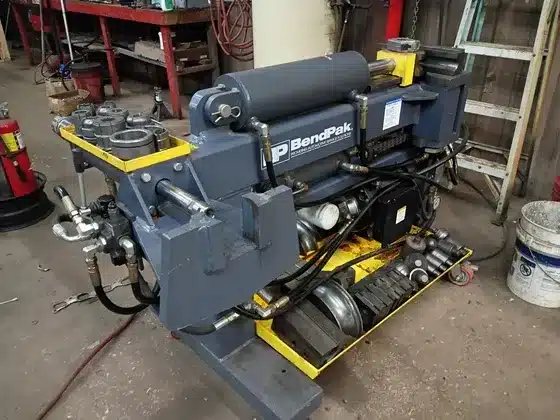 BLUE BULLET PIPE BENDER, HOBART WELDER, LINCOLN WIRE-MATIC 255 WELDER, BENDPAK PIPE BENDER, 14,000 LB. EXTRA LENGTH CAR LIFT, 12000 LB BEND PACK 4 POST CAR LIFT, DOUBLE BARREL WOOD BURNING STOVE, AIR COMPRESSOR, REFRIGEATOR, STEP LADDER, HAND TOOLS, SOCKET SETS AND LOTS MORE.